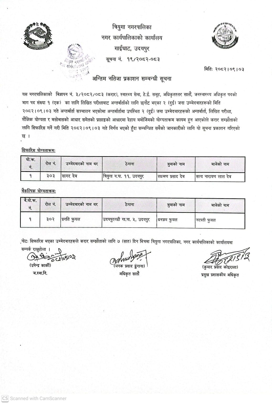 जनस्वास्थ्य अधिकृत को अन्तिम नतिजा प्रकाशन सम्बन्धि सूचना