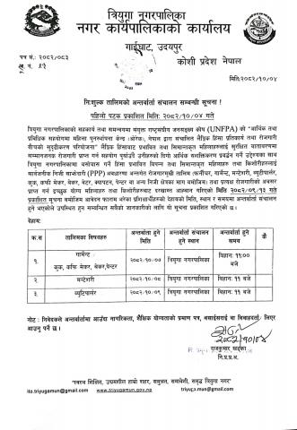 नि शुल्क तालीम को अन्तरवार्ता संचालन सम्बन्धि सूचना ।