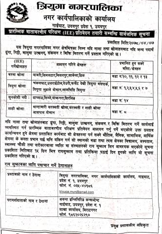 प्रारम्भिक वातावरण परिक्षण IEE प्रतिवेदन तयारी सम्वन्धी सार्वजनिक सुचना