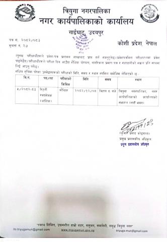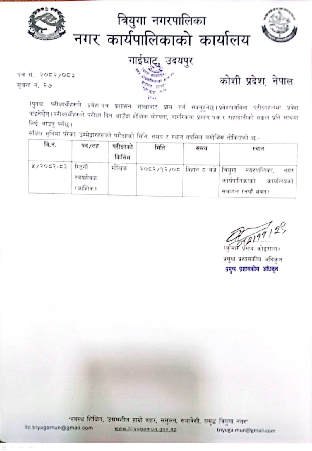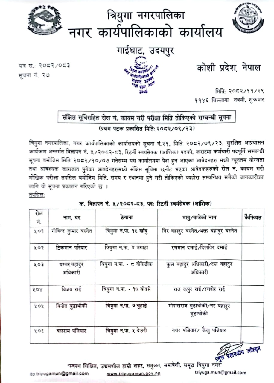 रिटर्नी स्वयंसेवक को संछिप्त सुची सहित रोल न कायम गरि परिक्षा मिति तोकिएको सूचना ।