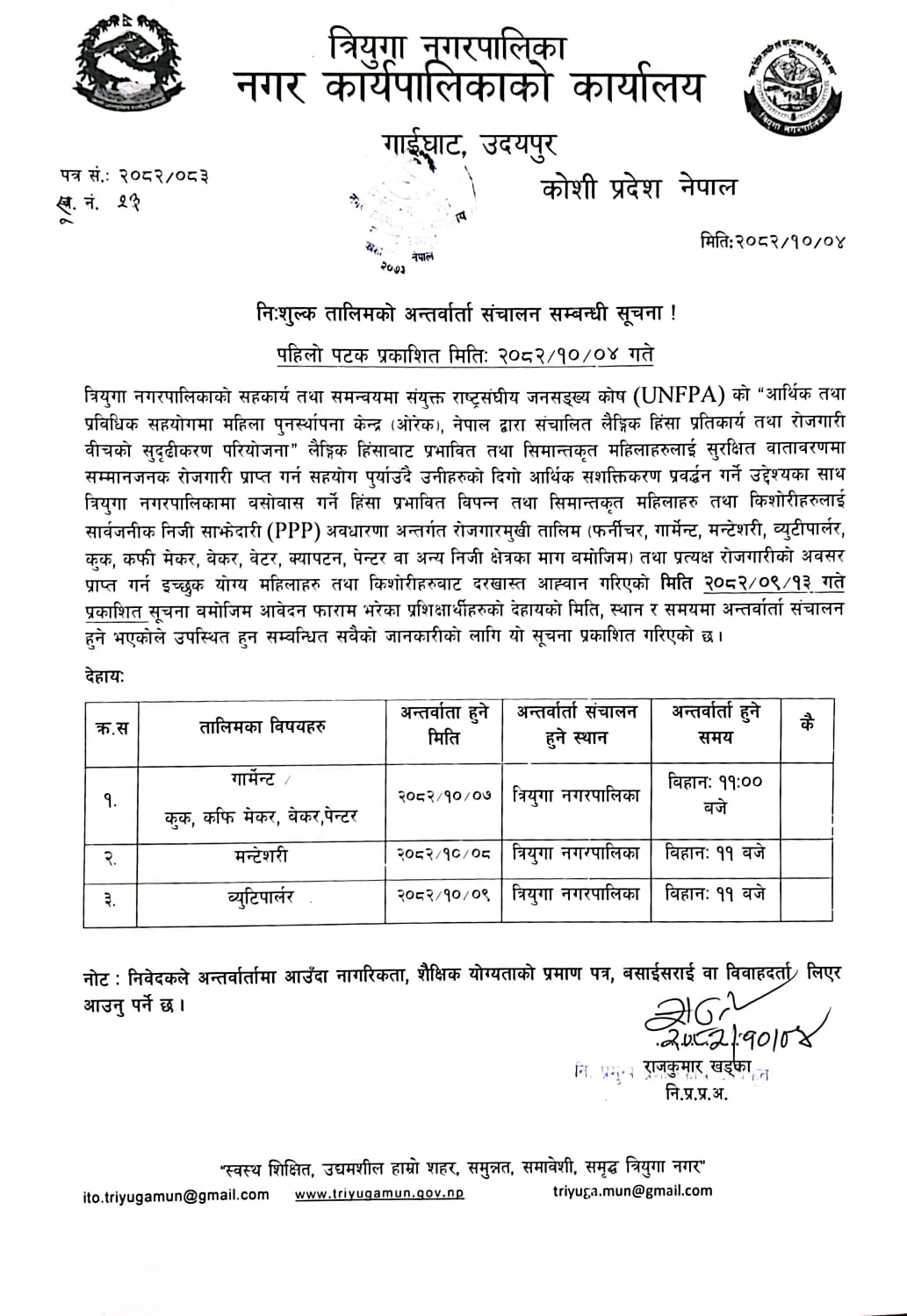 नि शुल्क तालीम को अन्तरवार्ता संचालन सम्बन्धि सूचना ।